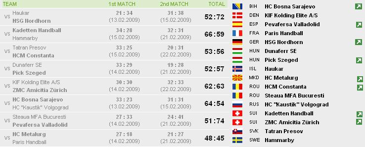 Az tovbjutott csapatok:Pick Szeged,Nordhorn,Valladolid,Schaffhausen,Bosna Sarajevo,Metalurg Skopje,Constanta, s a Zrich.