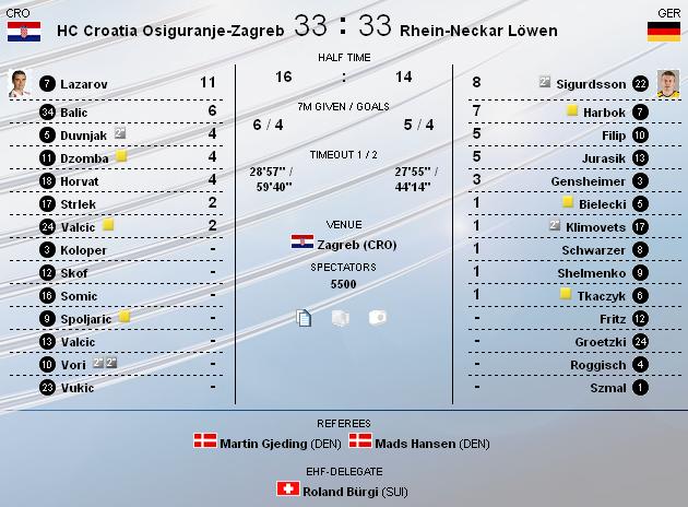 A tallkozn a Zgrbi s Mannheini sztrcsapat sszecsapsa 33-33-as dntetlent hozott.Taln kijelenthetjk h. a horvtok vesztettek pontot,mert otthon azrt meg kellett volna szerezni a gyzelmet.Viszont ez az X neknk jl jtt,annyi biztos... |